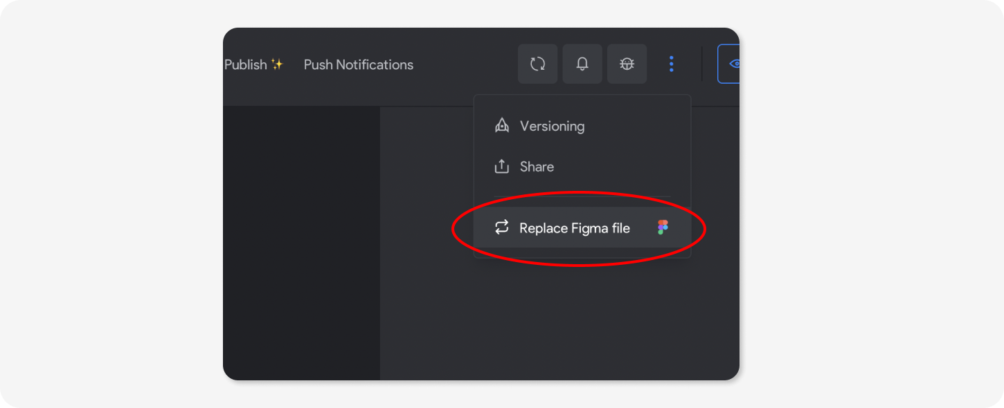 Click on the three dots icon at the upper right and choose Replace Figma file.