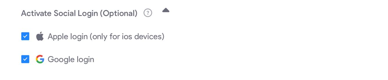 To activate the Social login (Google and Apple), you may complete the following: