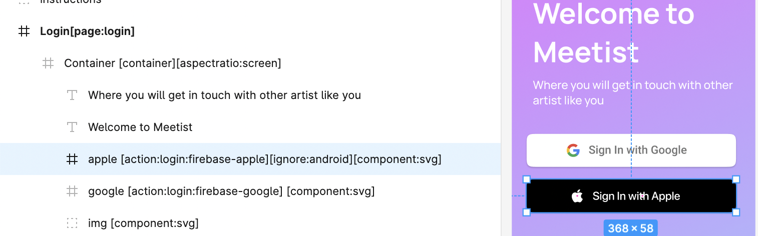 Here is a sample design file that already contain all the necessary tags for the Social logins (Google and Apple). This can also be combined in the same file with email and password login or phone login in case you want to provide all the options.